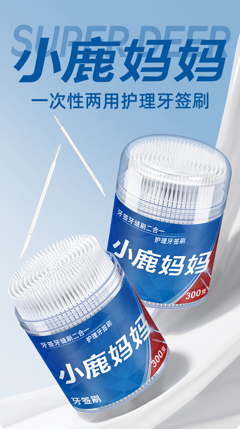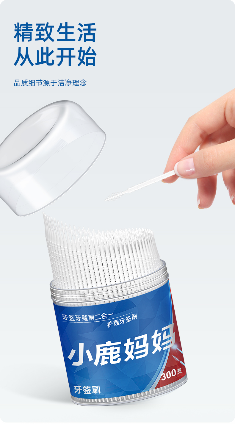 小鹿 牙签刷300支 桶装(小桶)