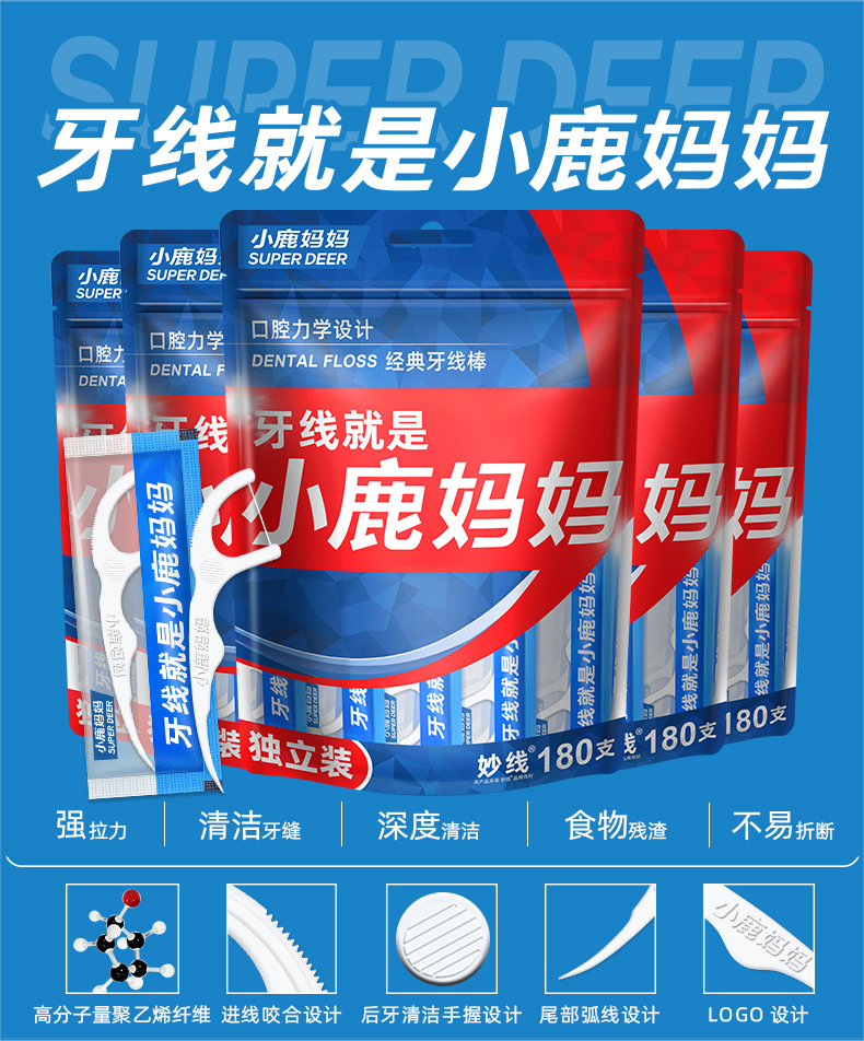 小鹿妈妈经典牙线独立180支袋装