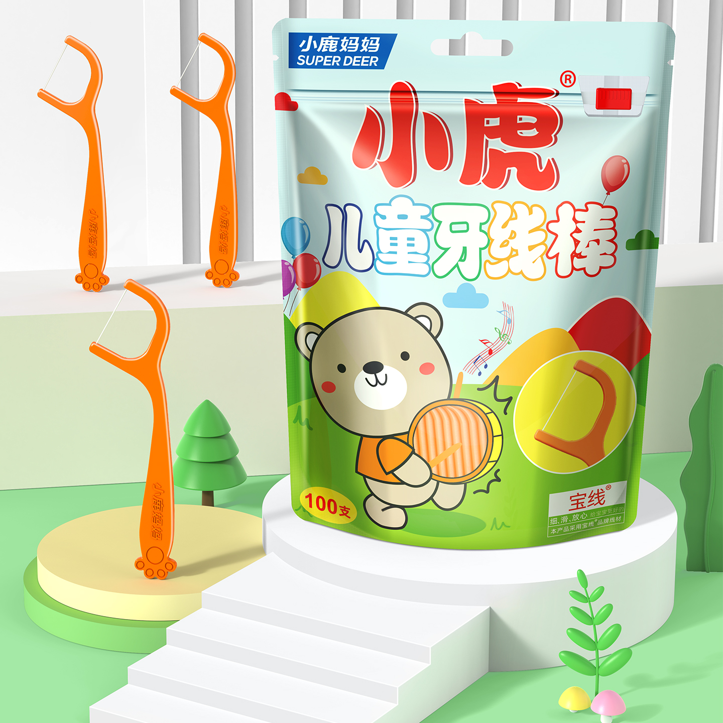 小熊儿童牙线100支 袋装