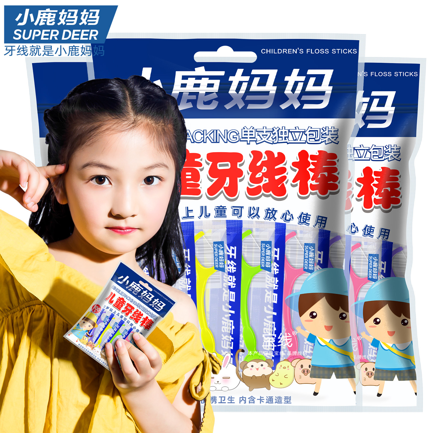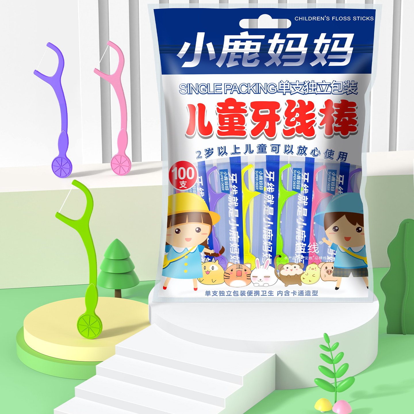儿童独立装牙线棒100支_袋装