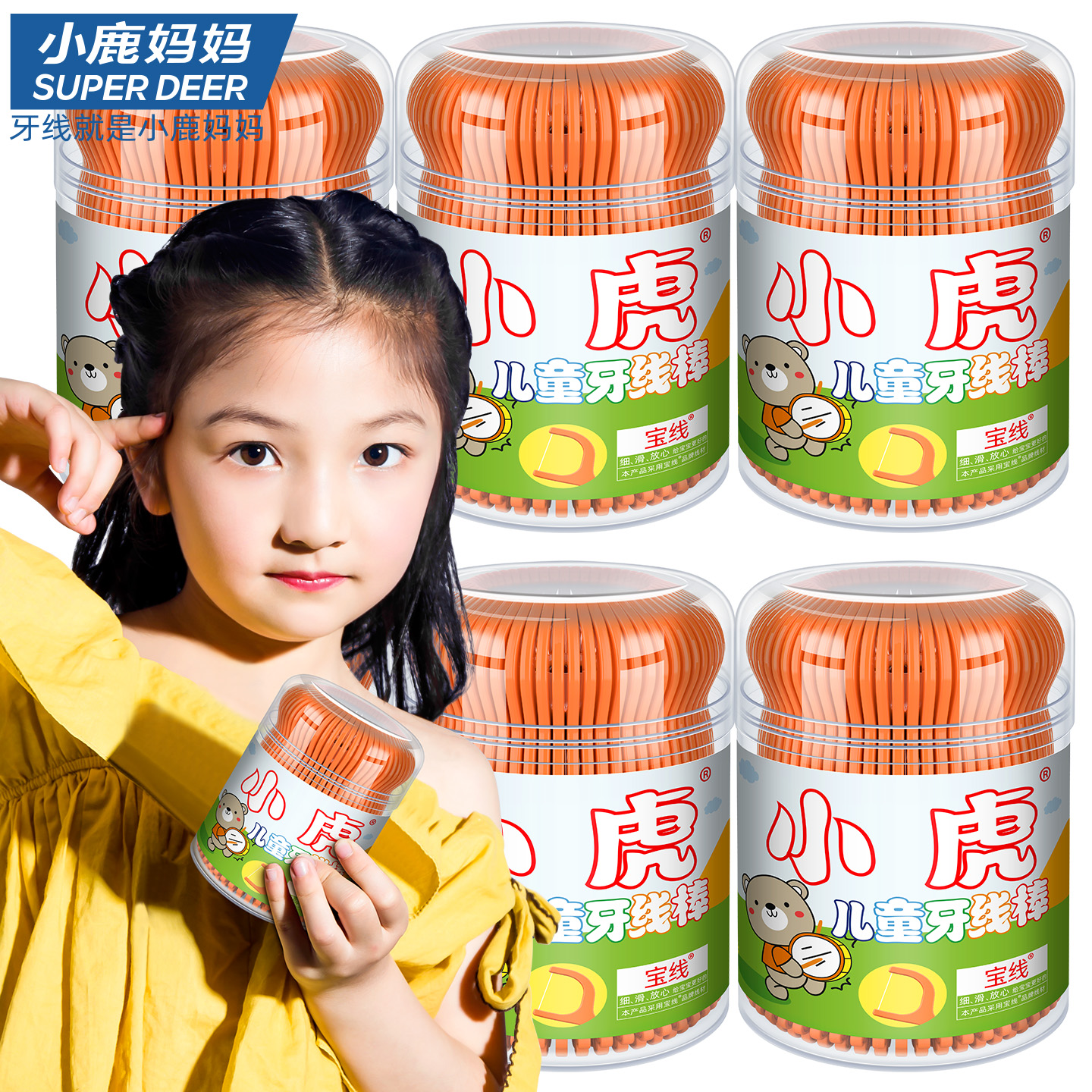 小熊儿童牙线棒50支_桶装