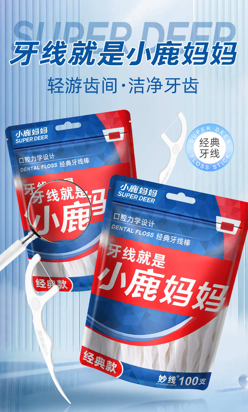 小鹿妈妈经典牙线100支袋装